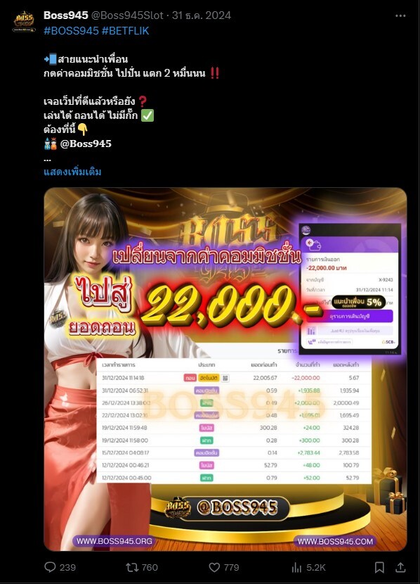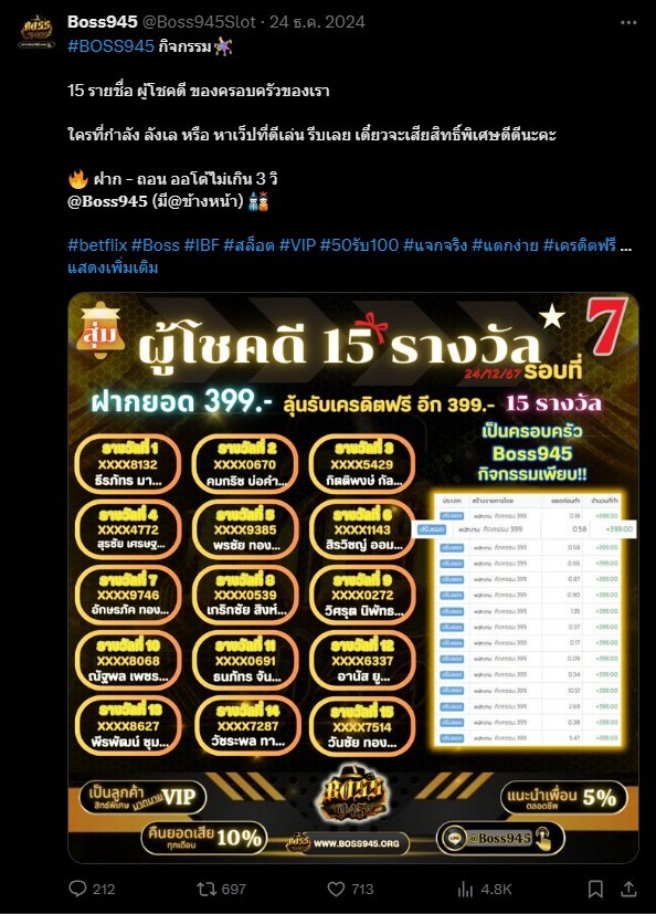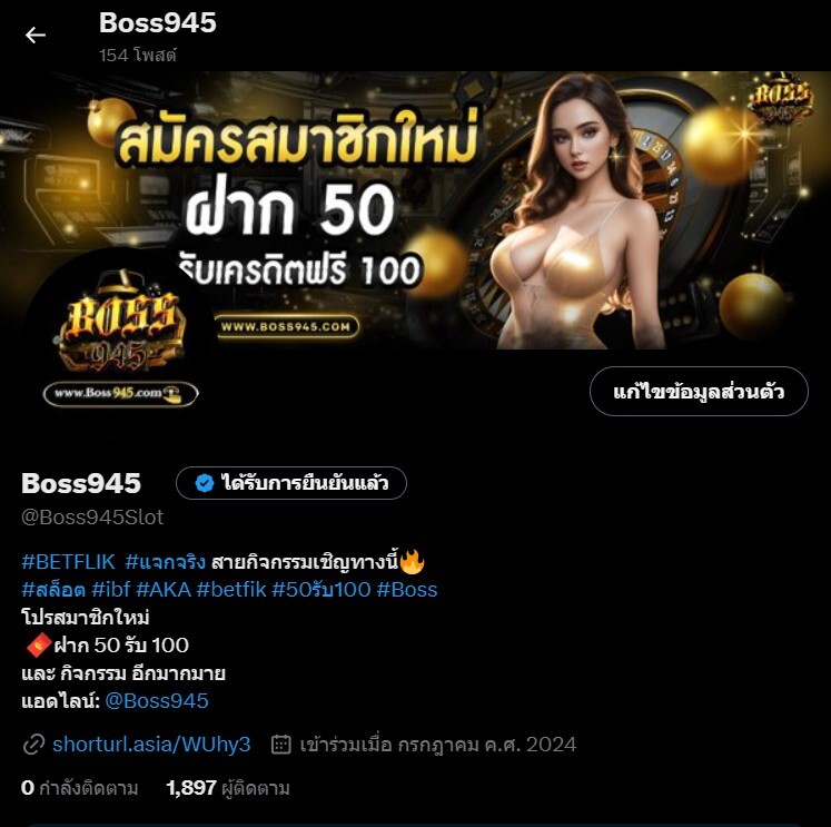 กิจกรรมทาง Twitter ของเว็บBoss945 เข้ามาร่วมสนุกกิจกรรม ลุ้นรับรางวัลอีกเพียบ เครดิตฟรี และอื่นๆ อีกมากมาย